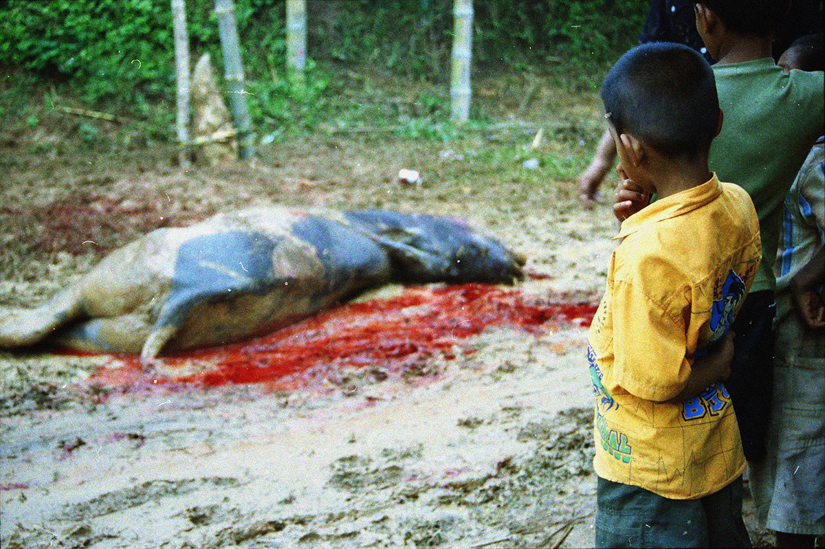 Animal sacrifices are an important component of the ritual. The more powerful the person who died is, the more buffaloes are slaughtered at the ceremony. Buffalo carcasses, including their heads, are usually lined up on a field waiting for their owner, who is in the «sleeping stage». Torajans believe that the deceased will need the buffalo to make the journey and that they will be quicker to arrive at Puya if they have many buffaloes.